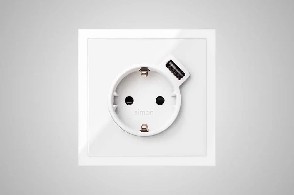 Las bases para enchufe con USB de Simon cumplen con las normativas de seguridad, y en este sentido, aunque la parte activa interna sea metálica y conductora, el usuario no está expuesto a ningún peligro directo gracias a su diseño externo en plástico aislante.