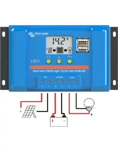 Barato Controlador de carga solar Victron BlueSolar PWM-LCD y USB de 10A y 12/24v