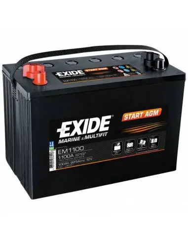 La batería Exide Start AGM EM1100 12V 100Ah esta diseñada para ofrecer una GRAN potencia de arranque en pocos segundos. Normalmente se utilizan como fuente de alimentación para el arranque de barcos equipados con equipos estándar o embarcaciones de competición que deseen reducir peso ya que esta batería proporciona una potencia de arranque de 800A.