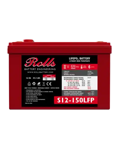 La Rolls S12-150 LFP es una batería de litio LiFePO4 de alta calidad, con una capacidad de 150Ah a 12V, diseñada para sustituir baterías de plomo convencionales, como la Trojan T1275, en diversas aplicaciones. Esta batería es ideal tanto para sistemas solares autónomos como para aplicaciones de tracción, como buggies de golf eléctricos, plataformas elevadoras, barredoras y fregadoras industriales, náutica, camper etc.. ofreciendo una alternativa moderna y eficiente a las tradicionales baterías de plomo-ácido.