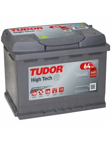 La Batería Tudor High Tech TA640 de 12V y 64Ah es la gama alta de Tudor, proporciona una gran potencia de arranque en frio, siendo perfecta para vehículos con alta electrónica. Cuenta con un 30% más de potencia que una batería convencional.