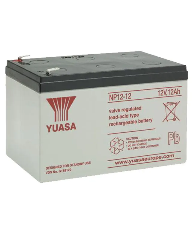 La Batería 12V 12Ah Yuasa NP-12-12 es una pequeña solución energética. Y funciona tanto como sistema de acumulación como fuente de energía. Esta Batería 12V 12Ah Yuasa puede funcionar hasta 20 horas en sistemas de seguridad, telecomunicaciones, iluminación y similares.