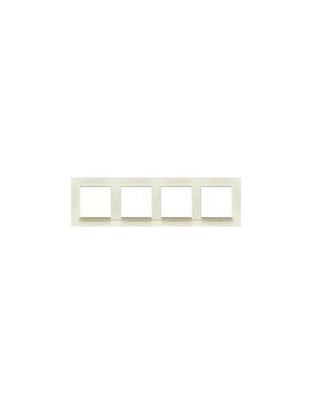 El marco cuádruple 90940 tmm de la serie Logus 90 animato Efapel presenta un acabado en color marfil que aporta calidez a cualquier estancia. Este marco permite instalar hasta cuatro mecanismos en una sola placa.