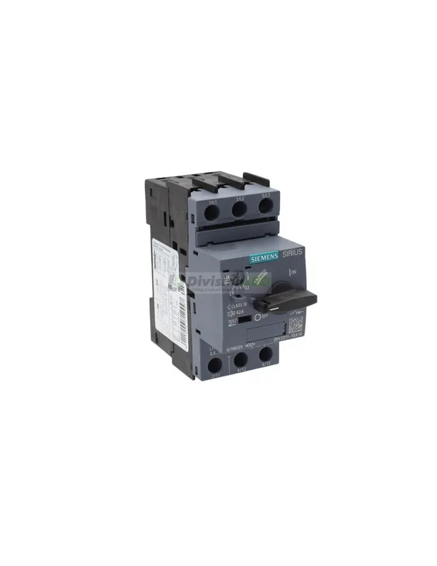 El Siemens SIRIUS 3RV2011-1DA10 Guardamotor S00 sobrecarga 2.2-3.2A cortocircuito 42A está pensado para su integración en instalaciones industriales. Su principal funcionalidad es la de protección al arrancar y parar motores. Pertenece a la familia de guardamotores eléctricos de instalación de la serie SIEMENS SIRIUS, una de las más extendidas del mercado. Por otro lado indicar que está compuesto de 3 polos, una corriente del disparador instantáneo de cortocircuito 42A. Cabe destacar que la su rango de regulación va desde 2.2A hasta 3.2A y su voltaje de aislamiento nominal es de 690VAC.
