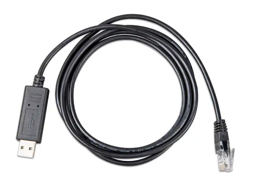 BlueSolar PWM-Pro a USB interface cable. Con este cable podrás conectar los reguladores de Victron Energy modelos Bluesolar PWM-Pro a un ordenador con USB.