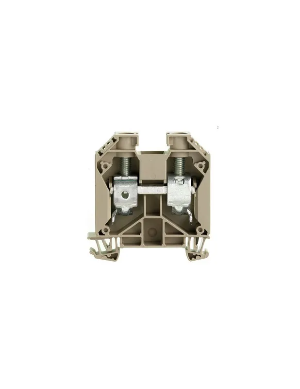 Borna de conexión brida-tornillo para instalar sobre carril Din. De color beige y con una sección maxima de 35mm