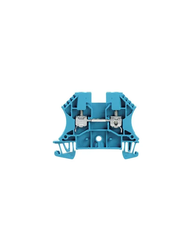 Borna de conexión para instalar sobre carril Din mediante tornillo. De color azul y con una sección maxima de 4mm