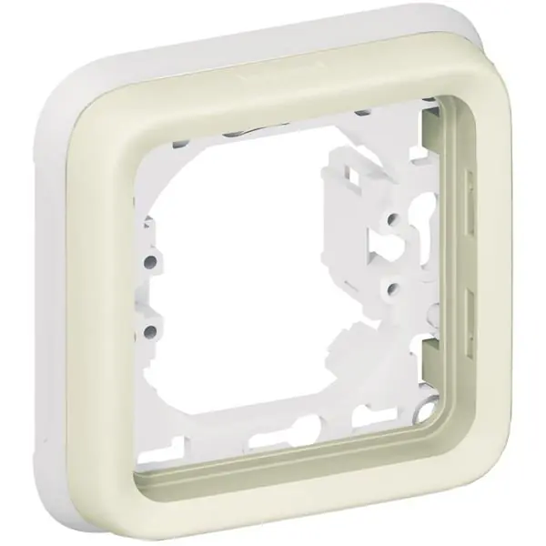 Caja empotrar 1 POSICION PLEXO blanco. Soportes de placas – Para instalación de mecanismos empotrados con cajas Batibox 1 elemento – Montaje de garras opcional ref. 0 849 00 en soporte 1 elemento – Blanco. Plexo – Mecanismos estancos IP 55 – componibles – superficie – cajas y soportes para placas – Cajas y soportes con frontal de acabado incluido – Clic sonoro para asegurar que la placa se ha fijado correctamente – Admiten los mecanismos modulares – Cajas que pueden equiparse con una borne de conexión Nylbloc automático, 2 conductores para una posible conexión suplementaria – IP 55 – IK 07.