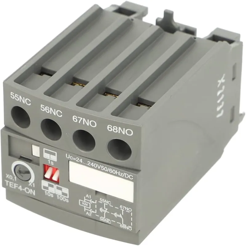 Características principalesEl contacto auxiliar temporizado TEF4 ON-DELAY 1NA + 1NC 1SBN020112R1000 de ABB es un temporizador electrónico frontal para contactores serie AF y NF, que ofrece retardo a la conexión (on-delay), con un rango ajustable de 0,1 a 100 segundos, tensión de control de 24–240 V AC/DC y montaje frontal con terminales de tornillo, ideal para controlar arranques de motores y procesos automatizados.