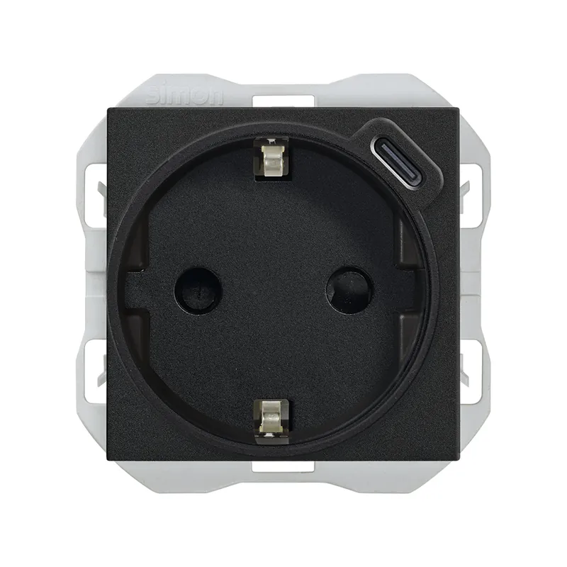 Compra Hoy Base schuko con cargador USB C 10,5W negro mate Simon 270