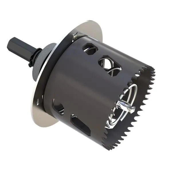 Corona Ø68 con avellanado para tabique hueco. Placa avellanadora desmontable. Cuerpo de aleación de acero de alta velocidad (soporta altas temperaturas originadas por la fricción). Dientes templados (el temple da rigidez a los aceros evitando el desgaste). Muelle expulsor y aberturas para extraer el sobrante. Válida para yeso, fibra de yeso, madera, aglomerado, metales blandos y plásticos.