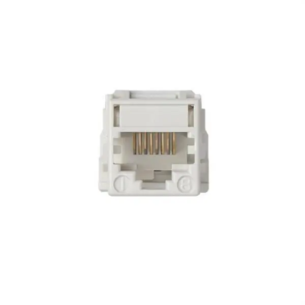 Conector informático RJ45 Systimax® de categoría 5e UTP marfil. Conector informático en formato RJ45 Systimax® de categoría 5e y tipología UTP color marfil, tiene 8 contactos, 8 hilos y pertenece a la amplia y extensa gama de artículos de Simon 75. Viene con sistema de embornamiento a inserción y funcionamiento también a inserción. El material con el que se ha fabricado es a base de componentes metálicos con aislamiento termoplástico libre de halógenos, capaces de alcanzar temperaturas que oscilan, entre los 5 y 40º, pudiendo llegar a soportar hasta un máximo de entre -25 de mínimo y 50º C de máximo. Esta toma cumple con todos los sistemas de seguridad según la normativa vigente de IEC 60603-7-2. Este conector cumple perfectamente su función gracias a la experiencia de una marca sólida y especializada en el sector.