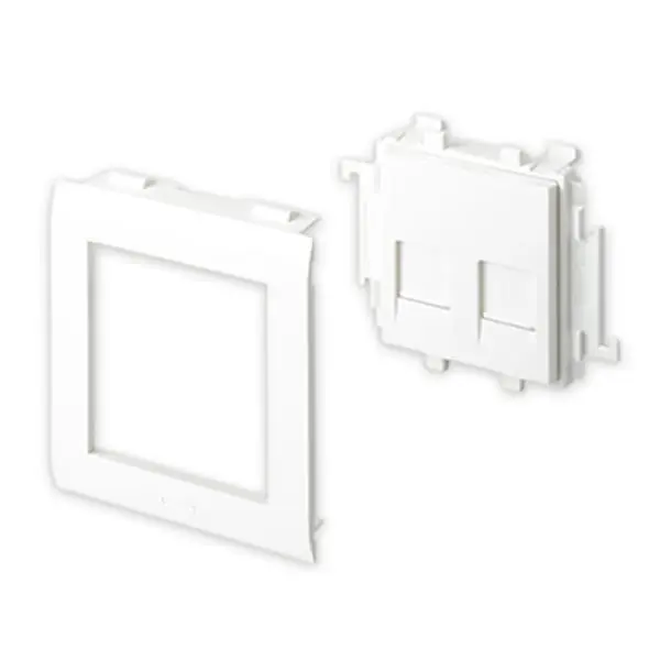 Placa plana Unex para tapa 80mm, en U24X. Para instalar conectores RJ45. Compatible con Systimax Solutions y universales tipo Keystone (AMP, Krone, Nexans, Jetlan, Belden, Brand-Rex y Openet-ICS). Color: Blanco. Material aislante. Facilidad de instalación. Protección contra daños mecánicos grado IK07.