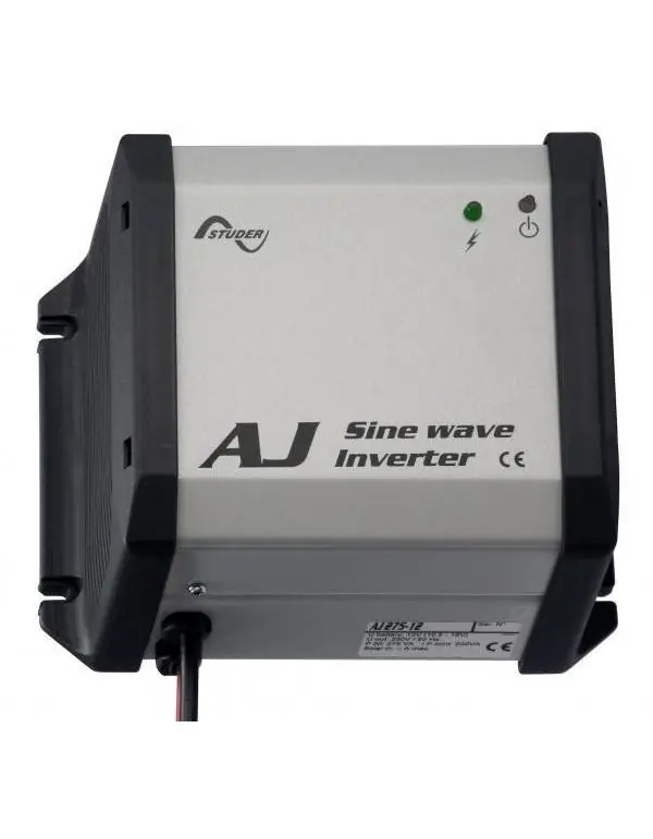 El modelo AJ 275-12 forma parte de la serie AJ de inversores senoidales del fabricante Studer para aplicaciones aisladas. Esta serie se caracteriza por su versatilidad, con modelos desde 200W a 2000W de potencia para adaptarse a cualquier requerimiento en instalaciones pequeñas y medianas.