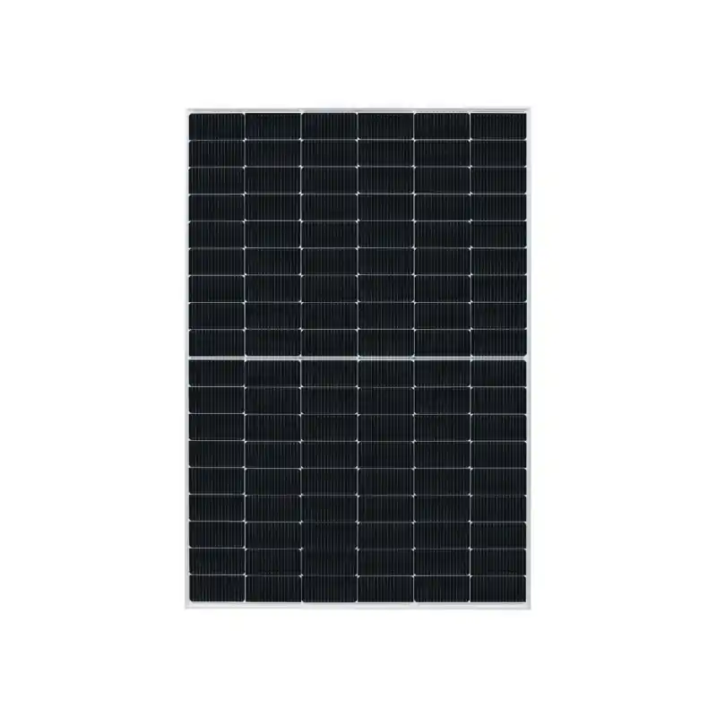 Diseñado con 144 células monocristalinas en formato Half-Cut (6×24) y 16 bus bars (MBB), mejora el comportamiento frente a sombras parciales y altas temperaturas, optimizando la captación solar incluso en condiciones desfavorables.