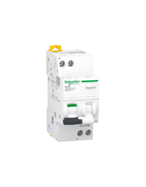 El Acti9 iCV40 representa la innovación en el campo de los disyuntores diferenciales modulares con protección contra sobrecorriente (RCBO). Es un interruptor 1P+N dotado de 1 polo protegido, con corriente nominal In de 10A y curva de disparo C.