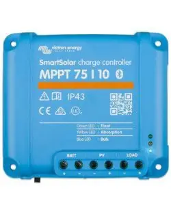 El Regulador MPPT 75V 10A Victron Smart Solar es capaz de cargar una batería con una corriente de carga de hasta 10A y admite una tensión en placas fotovoltaicas de hasta 75V.