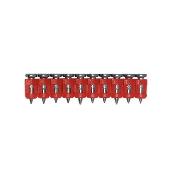Clavos de acero de 13 mm cincados y un diámetro de 3 mm reforzados con estrías para mejorar el agarre en materiales muy duros. Cada caja de 800 clavos incluye un cartucho de gas para realizar más de 1.000 disparos.