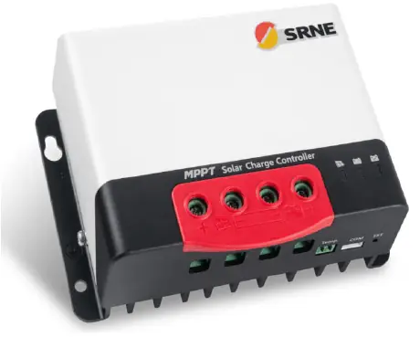 El regulador de carga solar MPPT SRNE adecuado para baterías de 12 y 24 V, admite una corriente de carga máxima de 20A y una tensión máxima en vacío de 100V. Se debe tener en cuenta que la potencia FV quedara limitada dependiendo de la tensión de salida elegida siendo 260W/12V y 520W/24V.
