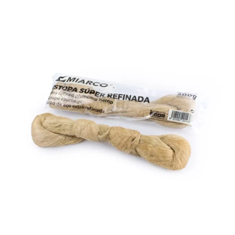 La estopa MIARCO está hecha 100% de lino cardado y refinado, su uso principal es asegurar la estanqueidad en juntas y empalmes roscados de tuberías, conducciones metálicas o plásticas.