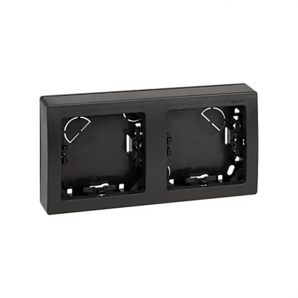 Marco con base para 2 elementos horizontal grafito Simon 73 Loft. La serie de marcos Simon 73 Loft cuenta con productos bastante versátiles, que garantizan la máxima funcionalidad durante su vida útil. Este es el marco con base para un total de dos elementos con un bonito acabado en color grafito. El marco se instala en horizontal. Para aportar un toque de distinción al espacio se recomienda utilizar las teclas y tapas necesarias en el mismo tono gris grafito del marco. El material de fabricación garantiza el máximo aislamiento, impidiendo un sobrecalentamiento y la propagación de cualquier tipo de incendio. Esto se debe a que cuenta con componentes aislados termoplásticamente de máxima calidad. El intervalo de temperaturas que soportan estos marcos Simon varía entre los -25 grados hasta los +50 grados centígrados. Las medidas del producto son de 75×146 milímetros y no requiere mucho mantenimiento. Para conseguir una durabilidad extrema en las mejores condiciones solo hay que limpiar los marcos con un paño suave y seco.