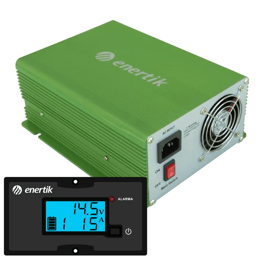 Para baterías 12V. Corriente de carga 60A, Potencia: 1000W. Con panel e interruptor remoto. 3 Etapas de carga. Forzadores automáticos. Con tecnología Switching. Amplio rango de alimentación y adaptación dinámica de la tensión de salida. Sensor de temperatura incorporado. Control por microprocesador y protecciones automáticas