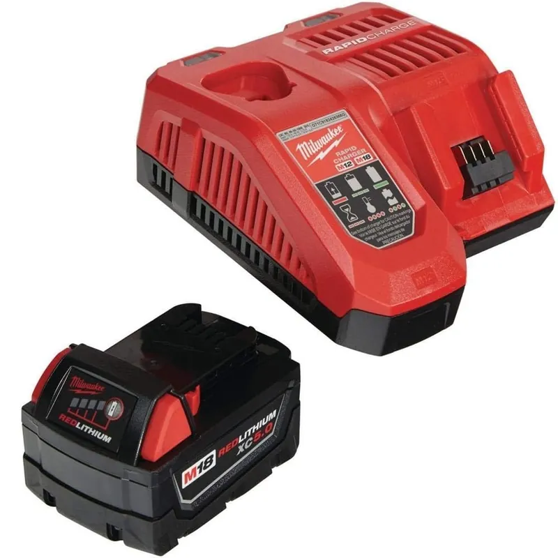 Características principalesIncluye una batería M18 REDLITHIUM XC 5.0 Ah y un cargador M18/M12. Proporciona hasta 2.5 veces más autonomía, 20% más potencia y una vida útil 2 veces mayor en comparación con baterías estándar. Diseñado para ofrecer máximo rendimiento en climas extremos y proteger contra sobrecargas, sobrecalentamientos y descargas profundas. Compatible con toda la línea de herramientas Milwaukee M18.