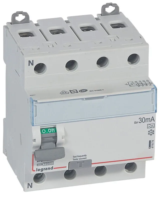 El Diferencial 40A 4P 300mA Tipo A Legrand DX³ ofrece una protección fiable frente a contactos directos e indirectos, evitando descargas eléctricas y reduciendo el riesgo de incendio por corrientes de fuga. Diseñado para instalaciones de hasta 400V~, cuenta con entrada superior y salida inferior mediante bornas de tornillo. Su tecnología Tipo A detecta fugas de corriente alterna y continua, siendo ideal para electrodomésticos y circuitos especializados.