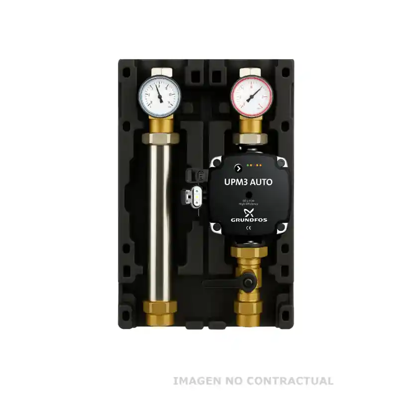 Este grupo de bombeo incluye una bomba Grundfos UPM3 25/70, una bomba circuladora diseñada para aplicaciones de climatización que ofrece: