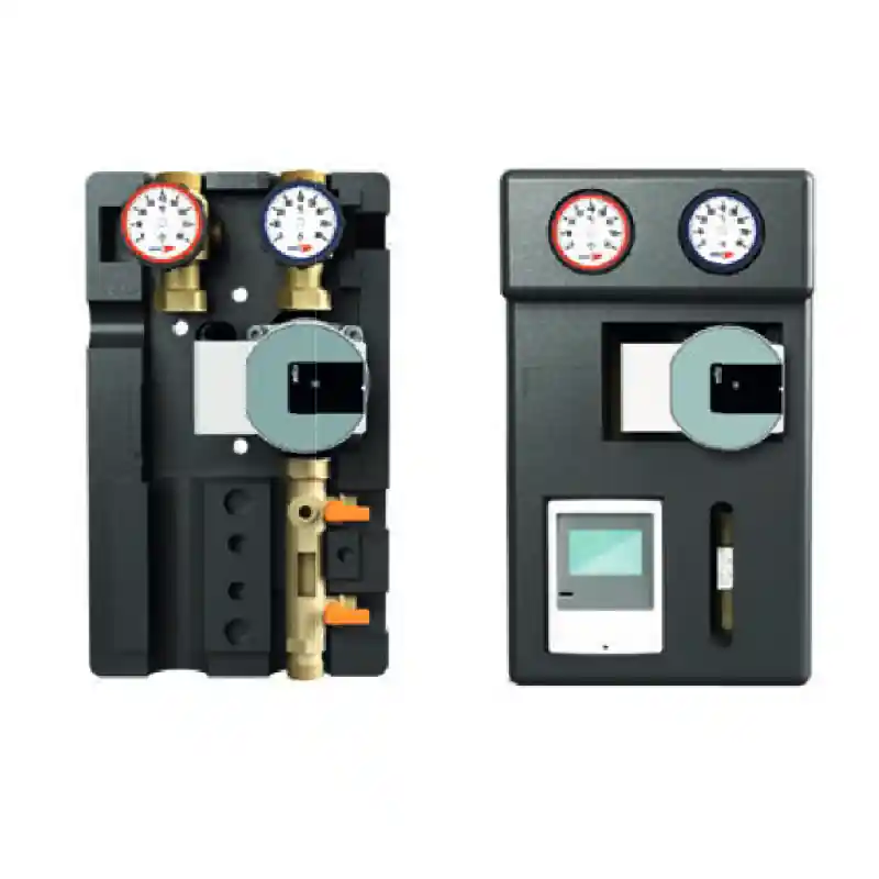 En la vía de retorno también se incluye una válvula/termómetro, garantizando una supervisión térmica constante del flujo de retorno y facilitando el diagnóstico del sistema.