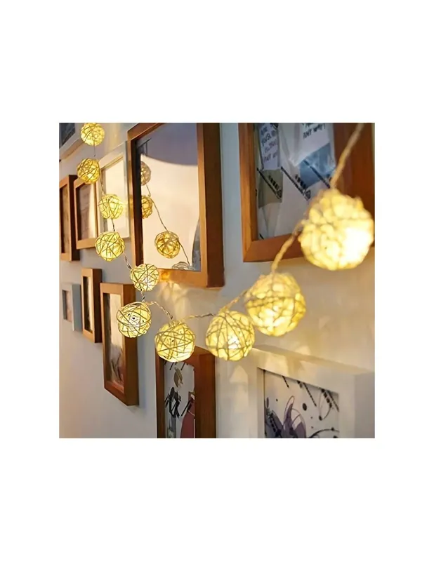 Con 10 LEDs cuidadosamente distribuidos a lo largo de su longitud de 1.35 metros, esta guirnalda de bolas de madera emite una luz suave y acogedora que crea una atmósfera relajante en cualquier habitación. Su baja potencia de 0.15W garantiza un consumo eficiente de energía, lo que la convierte en una opción respetuosa con el medio ambiente.