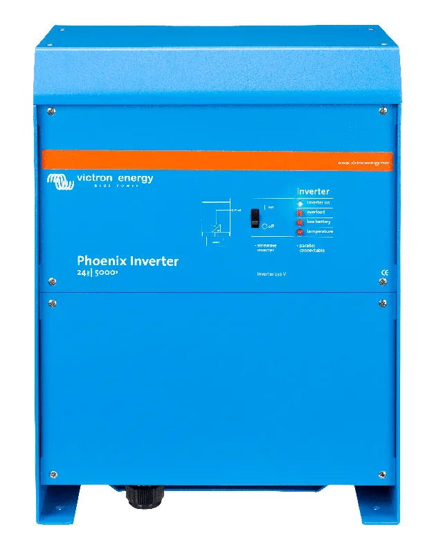 Desenvolvida para utilização profissional, a gama de inversores Phoenix, à qual pertence o inversor Victron Phoenix 24V 5000VA – PIN245020000, é adequada para a mais vasta gama de aplicações. O critério de conceção foi o de produzir um inversor de onda sinusoidal verdadeira com eficiência optimizada, mas sem comprometer o desempenho. Empregando a tecnologia híbrida HF, o resultado é um produto de alta qualidade com dimensões compactas, peso leve e capaz de fornecer energia sem problemas a qualquer carga.