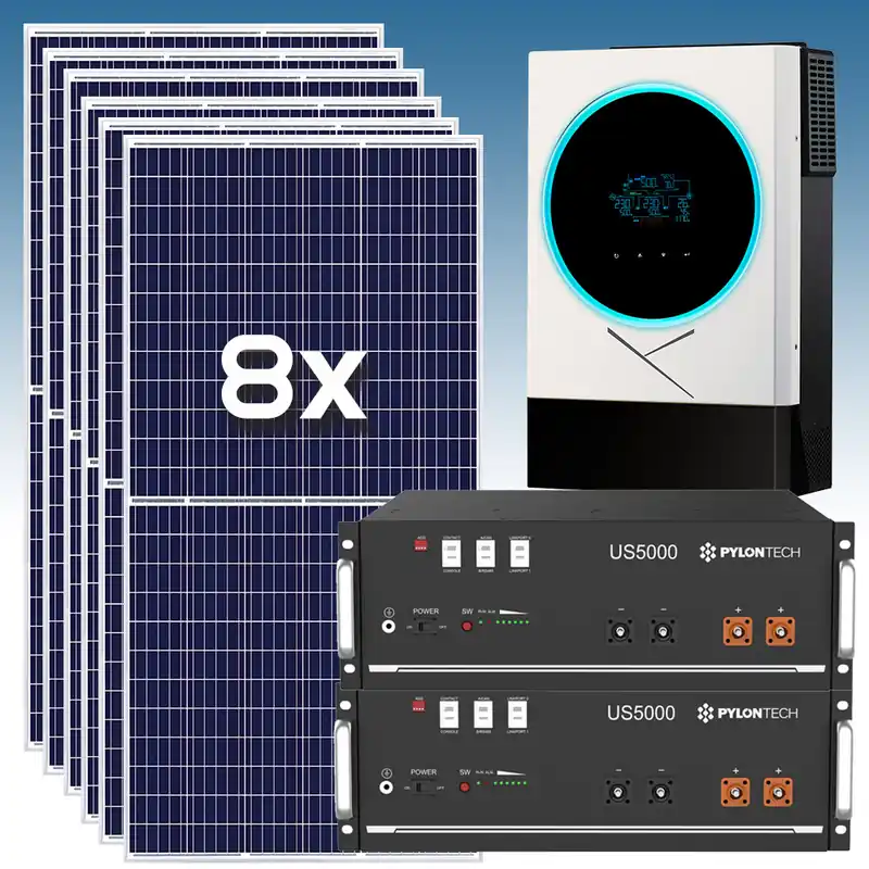 Kit Solar Fotovoltaico 12 kWh/dia con 2 baterías de LITIO Pylontech US5000C 4,8 kWh 48V e Inversor de 5600W 48V MPPT.