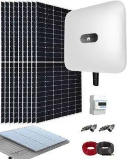 La ventaja de un sistema con inversor Huawei es su precio bajo de compra que favorece una amortización Rápida en p0oco tiempo . Este kit de conexión a red incorpora una avanzada monitorización de la producción, LA APP FUSION SOLAR, su inversor incluye 2 maximizadores MPPT y con la mejor garantía de fiabilidad del conocido fabricante Huawei, ya que el inversor tiene 5 años de garantía. Mediante este sistema de Huawei podremos producir electricidad con los paneles solares para aumentar nuestro autoconsumo directo y reducir aún más nuestro gasto de electricidad sobre una red trifásica. Este sistema es ampliable con una batería de litio , de alto voltaje Huawei Luna2000 con capacidades de entre 5 y 30kWh. La energía generada en las horas diurnas será la que tenemos disponible para el consumo instantáneo. Se incluye también un vatímetro que se encarga de medir la energía que demandamos, conectado a la app, para nuestro consumo y poder elegir si vertemos o no el excedente de producción a la red, y crear una BATERIA VIRTUAL .