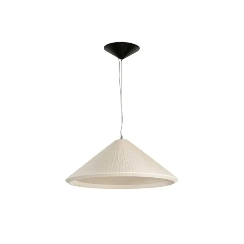 Esta luminaria tiene una original pantalla elaborada con cintas, creando una ilusión óptica de pantalla compacta.