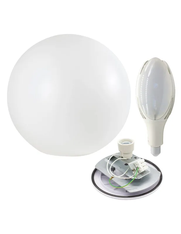 Difusor Bola Farola de jardín Polietileno 40 cm Blanca + bombilla LED + Base para bola farola E27 con regleta de conexión rápida