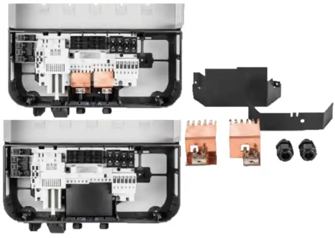 DC Con Kit habilita la conexión de ambas entradas en el caso de que haya corrientes MPP por encima de 35 A y una sección transversal del cable de más de 16 mm², por ejemplo al usar un DC Box.