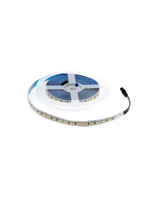 Tira de led a 24VDC, con un índice de protección de 20, van en paquetes de 5 metros, además cuentan con una banda autoadhesiva que facilita su colocación, el tipo de led es el SMD2835 con de 14W metro de potencia.