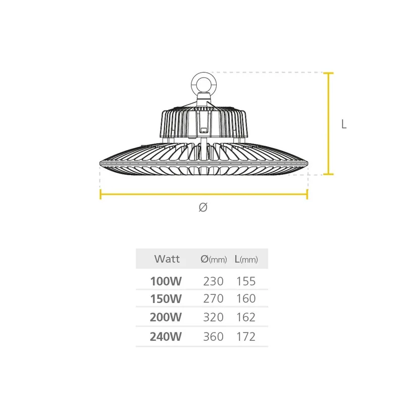 Características principales«Modelo: LED HIGHBAY 150W DL GC015 DIM (P40092)