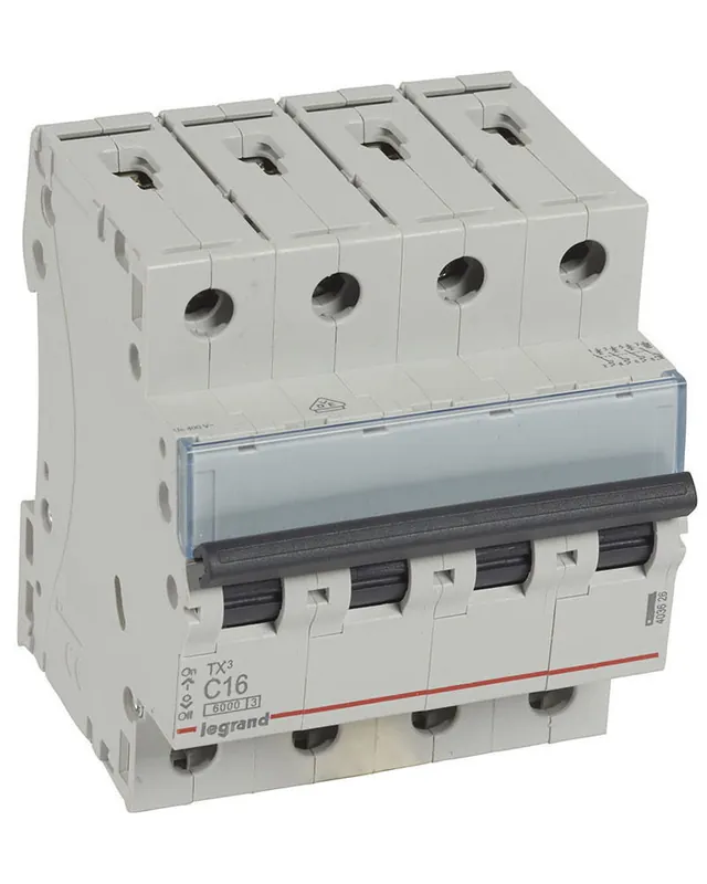 El Magnetotérmico Legrand 16A 4P 6KA C se trata de un interruptor automático magnetotérmico TX³ Tetrapolar 400 V, curva C y poder de corte 6000A. Este modelo cuenta con 4 polos.