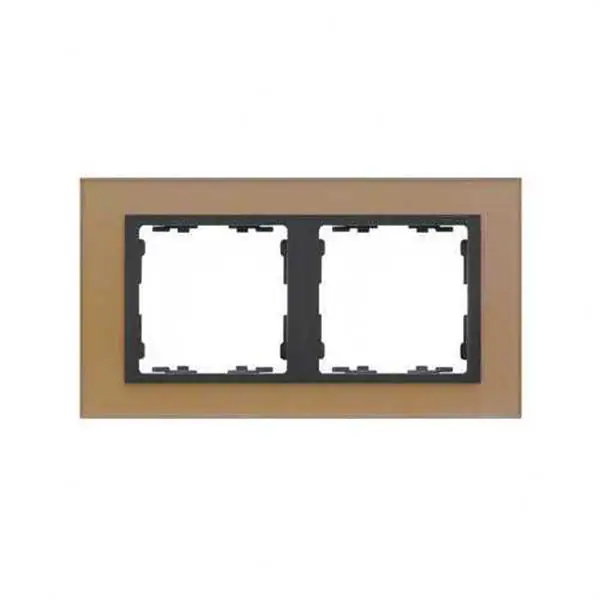 Marco para 2 elementos cristal cobre interior grafito Simon 82 Nature. Este marco para 2 elementos pertenece a la serie Simon 82 Nature, una colección que apuesta por los materiales naturales. Con acabado en cristal cobre y embellecedor en color grafito, el mecanismo tiene unas dimensiones de 173x94mm y es apto para empotrar. La colección Simon 82 Nature se inspira en la acción que ejercen los elementos sobre la materia y presenta piezas ideales para contrarrestar la oscuridad de los espacios. Así, el cristal es la clave para aportar luminosidad y armonía a cualquier estancia del hogar. El zócalo de la pieza es de termoplástico, material que contribuye a la resistencia y robustez del marco. Por su diseño, se recomienda utilizar el acabado grafito para las teclas y tapas y así combinarlas con el marco de manera más acertada. Para su limpieza, use un paño suave humedecido levemente en agua jabonosa. Es aconsejable evitar aquellos limpiadores que contengan cloro.
