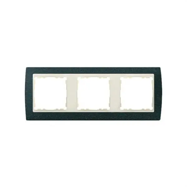 Marco para 3 elementos verde textura interior marfil Simon 82. El marco está diseñado para 3 elementos y se incluye en la serie Simon 82. Sus acabados en verde texturizado y marfil en el interior lo hacen óptimo para combinar con teclas y tapas con el mismo tipo de acabado en marfil. Para su colocación tener en cuenta que la pieza es apta para empotrar y que sus dimensiones son de 229x89mm. Para la limpieza y mantenimiento del marco, puede utilizar un paño suave con agua y jabón. No utilice productos abrasivos que contengan cloro ya que dada su fabricación con zócalo termoplástico y marco zamak, se podría estropear el color. Este tipo de materiales son capaces de soportar temperaturas entre los 5 y 40º, pudiendo llegar a un máximo de -25 y 50º C.