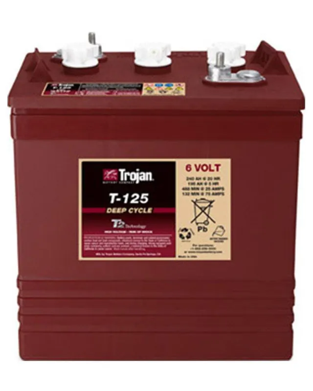 La Batería 6V 240Ah TROJAN T-125 es número uno en tecnología del ciclo profundo, fabricadas en Estados Unidos desde 1925. La Batería 6V 240Ah TROJAN T-125, con 10 años de vida útil está diseñado específicamente para soportar las condiciones más rigurosas dentro de las instalaciones solares, que requieren un gran número de ciclos de carga y descarga sometidos a las exigencias climatológicas o del usuario en cada momento.