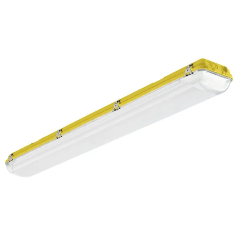 La luminaria ACQUEx LED-M 1.2 60-840 de Zalux es una solución de iluminación industrial de alto rendimiento diseñada para entornos ATEX (Zona 2 y 22). Fabricada en poliéster reforzado con fibra de vidrio (GRP) y difusor de policarbonato con protección UV, ofrece una excelente resistencia mecánica (IK10) y protección frente a polvo y agua (IP66).