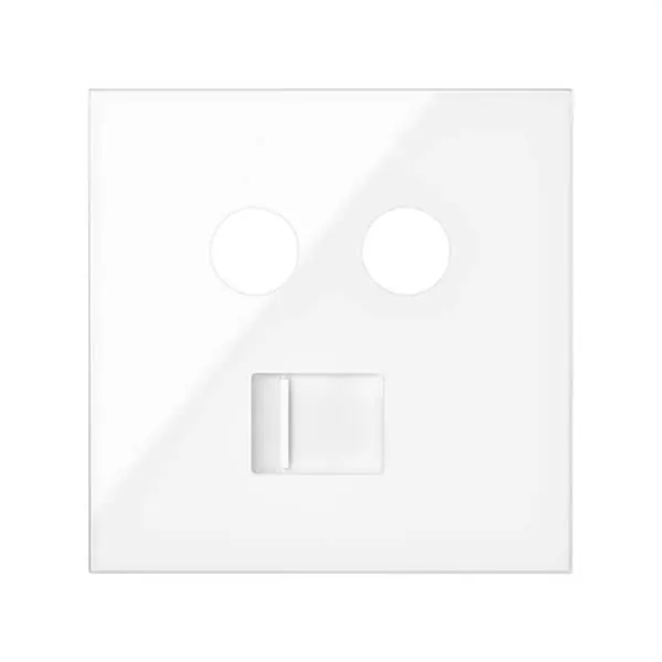 Tapa para tomas inductivas de R-TV+SAT y de voz y datos RJ45 blanco Simon 100. Esta tapa de color blanco con efecto cuarzo está indicada para tomas inductivas de R-TV+SAT y de voz y datos. Es también compatible con los conectores RJ45 y se incluye en la serie Simon 100, una serie que destaca por el diseño de dispositivos adaptados a los tiempos actuales. El artículo está fabricado en PMMA con base termoplástica, un material caracterizado por su resistencia térmica. Es apto para empotrar y se recomienda que su instalación se haga en entornos cuya temperatura oscile entre 0 y 40º para un mejor rendimiento. El artículo cumple con la normativa vigente, permitiendo una interacción máxima con el usuario. En relación a su limpieza, es conveniente utilizar un paño que sea de textura suave y que esté ligeramente húmedo. Recuerde que los productos limpiadores que contengan cloro y sean abrasivos no son nada recomendables, pues podrían dañar la tapa.
