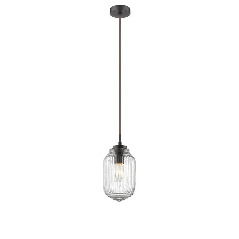 Material: Cristal transparente, base metalica marron y cable textil marron.