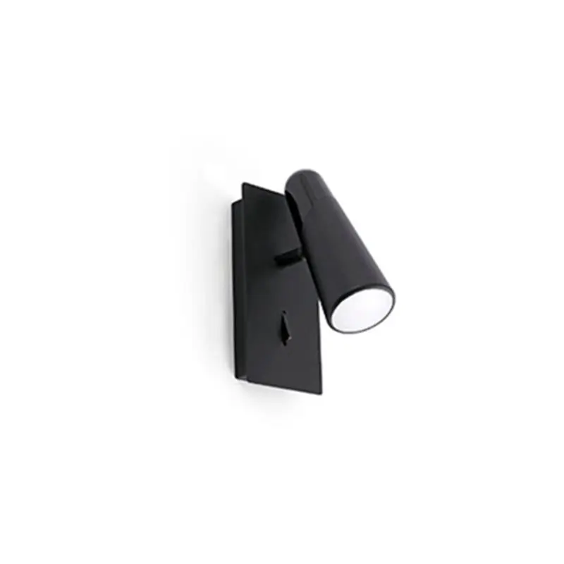 Aplique minimalista negro con un interruptor integrado en la base para facilitar su uso.