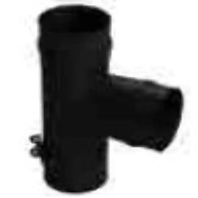 Sistema modular metálico en forma de «T» para la evacuación de humos y gases de los productos de la combustión como estufas de biomasa (pellets, astillas, etc.) de simple pared, fábricada en ACERO INOXIDABLE AISI 316L y pintado exterior de color negro. Junta de silicona incorporada. Sólo instalación interior en la misma estancia que el aparato. Diameto: 80 m/m