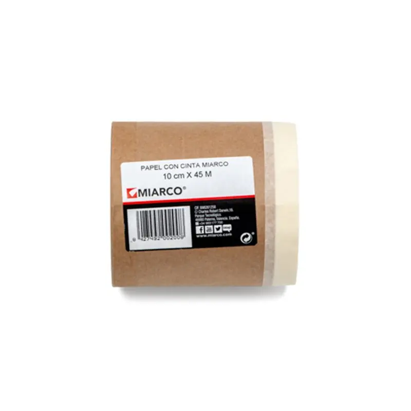 El papel con cinta MIARCO está formado por un cuerpo de papel kraft con un borde de cinta adhesiva de enmascarar.