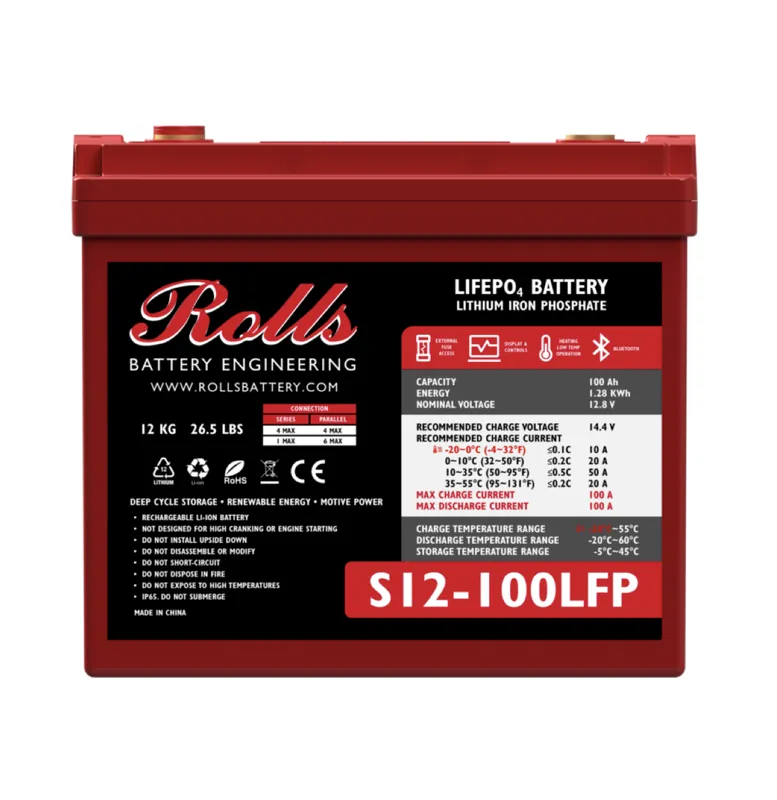 Las baterías Rolls R-Series y S-Series de fosfato de hierro y litio (LFP/LiFePO4) son un reemplazo ideal para las baterías tradicionales de plomo-ácido de tamaño y capacidad equivalentes y ofrecen la misma calidad, confiabilidad y rendimiento que se encuentran en otros productos Rolls Battery. Se pueden conectar hasta 4 baterías en serie y hasta 4 baterías en paralelo.